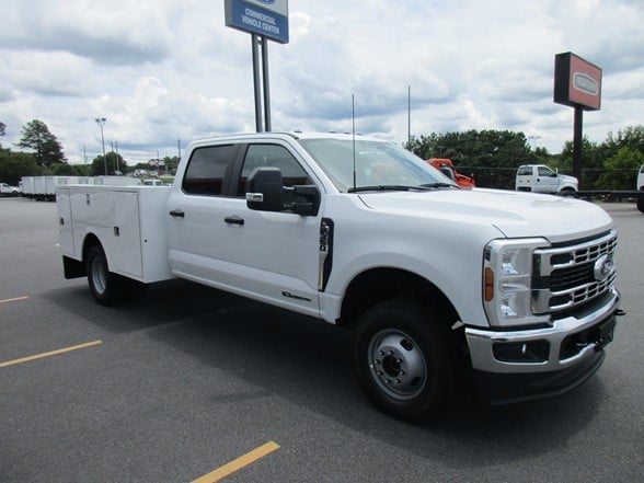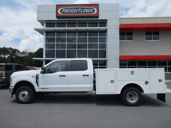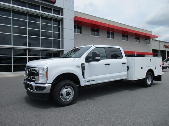 NEW 2024 Ford F-350 Crew Cab 9 ft Warner Service Body 4x4 6.7L Power Stroke Diesel 50 state emissions! 10 Speed Automatic Transmission 14,000 GVWR Package Additional Features: Preferred Equipment Package 640A, XL Trim/Air Conditioner, AM/FM/Stereo, MP3/Clock 4.10 Axle ratio, 40 Gallon Fuel Tank, Dual Battery, Privacy Glass, XL Chrome Package, Back Glass Defrost, Power Sliding Rear Window, Fog Lamps, Remote Start System, Receiver Hitch Package. Financing & Extended Warranty Available! Work Ready! Call Today!
